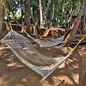 A hammock is a sling made of fabric, rope, or netting, suspended between two points, used for swinging, sleeping, or resting. It normally consists of one or more cloth panels, or a woven network of twine or thin rope stretched with ropes between two firm anchor points such as trees or posts.